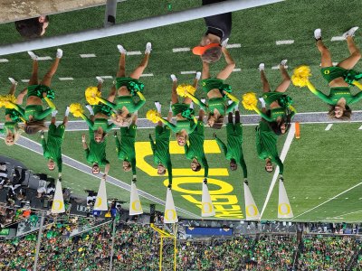 Pictures of the amazing Oregon Ducks Cheerleading squad!